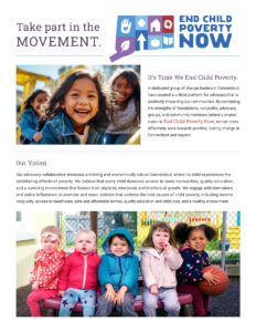A dedicated group of change leaders in Connecticut have created a unified platform for advocacy that is positively impacting our communities. By combining the strengths of foundations, nonprofits, advocacy groups, and community members behind a shared vision to End Child Poverty Now, we can more effectively work towards positive, lasting change in Connecticut and beyond.